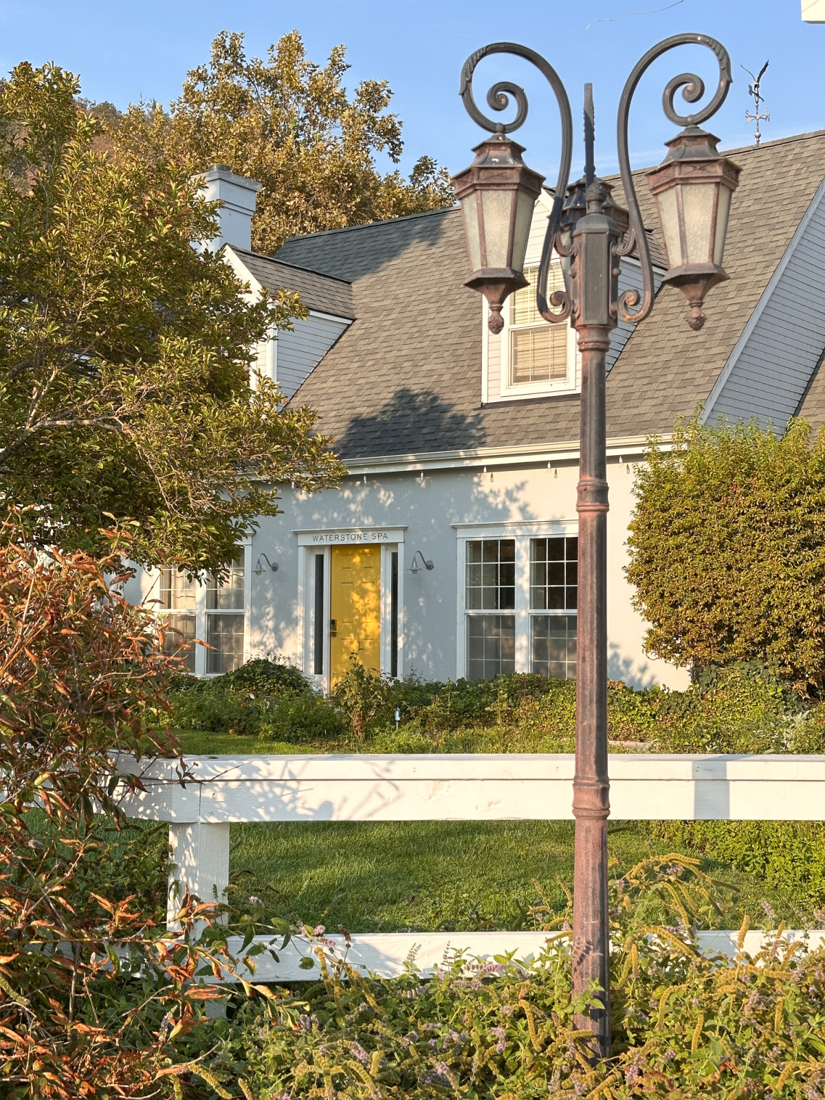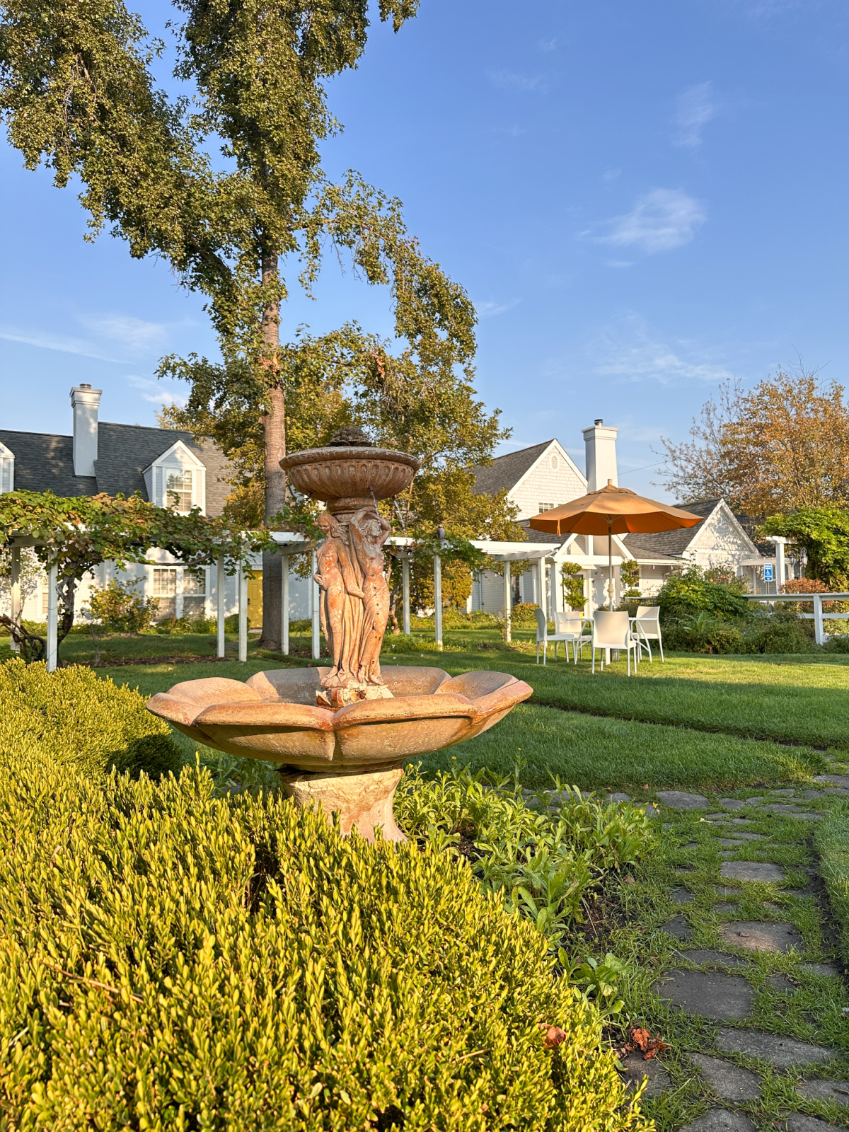 In addition to the scones, another highlight of the resort is the pretty, cheery property. Pale blue traditional buildings with white trim and bright yellow doors and 4+ acres of beautiful, lush gardens (especially lovely in the spring and fall) with a gazebo, fountains, arbors and a bridge … and a very welcoming staff.