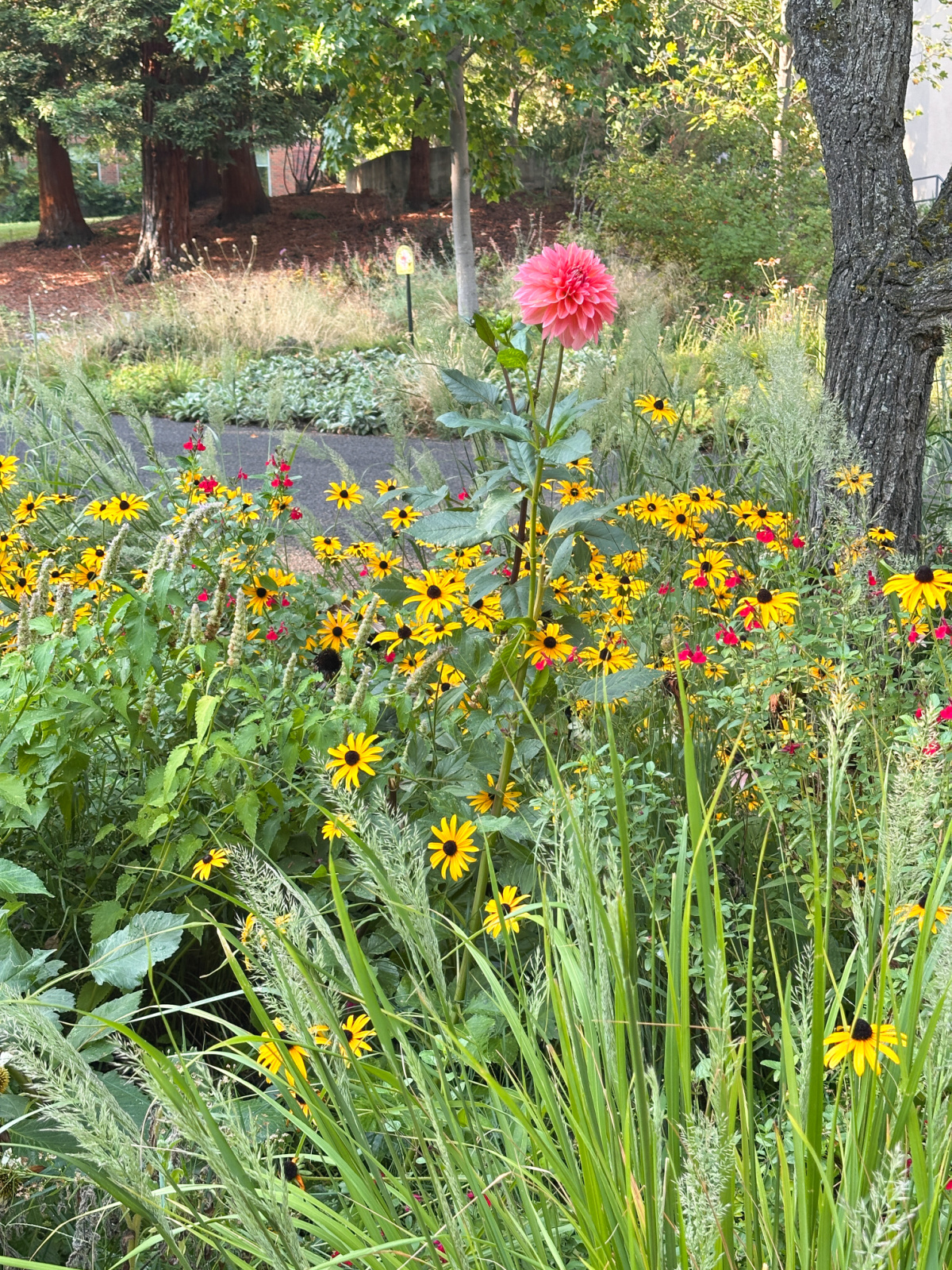 The Pacific Northwest is a haven for gardeners and the university campus is a prime example. The campus is also dotted with many art installations.