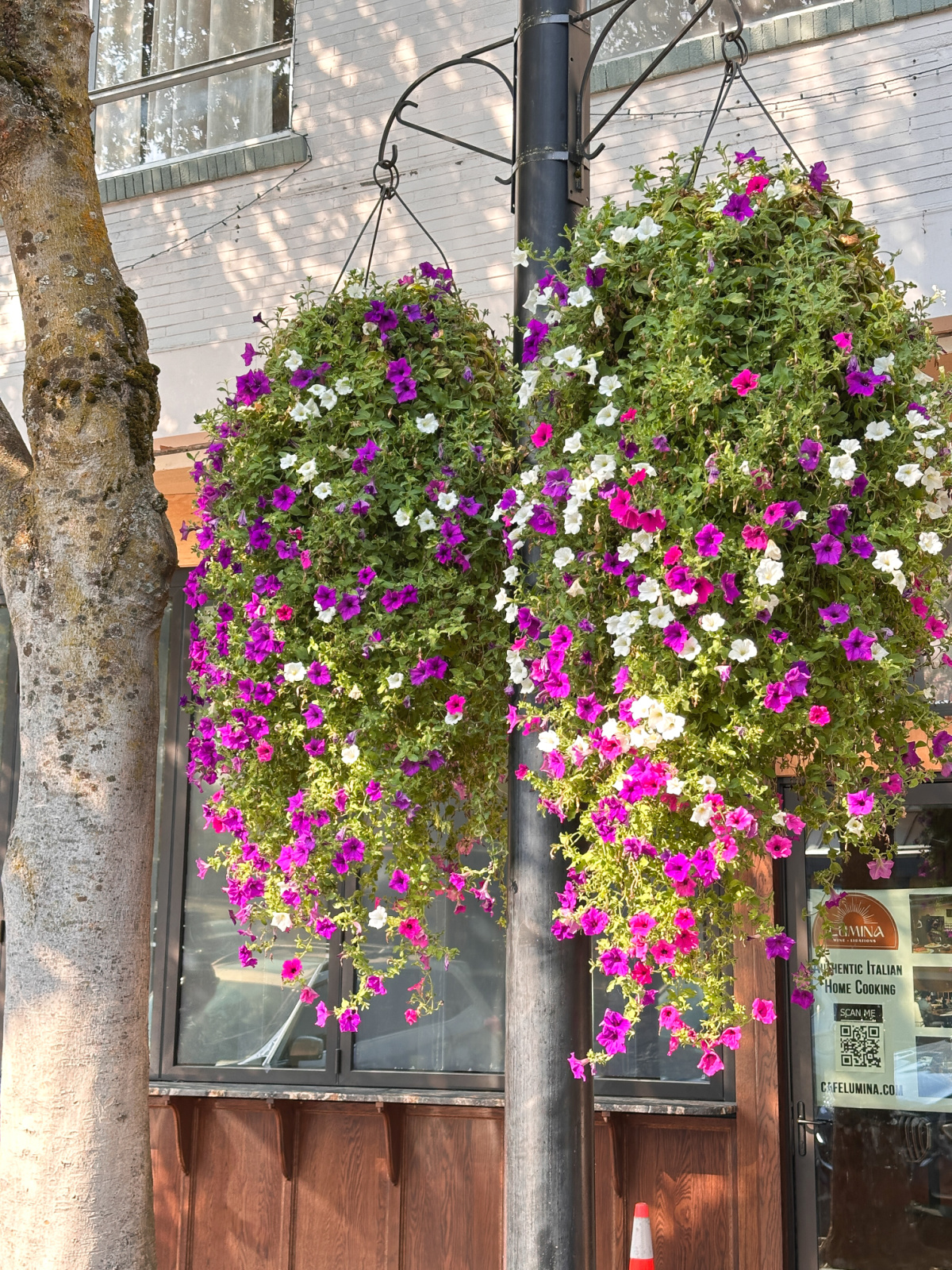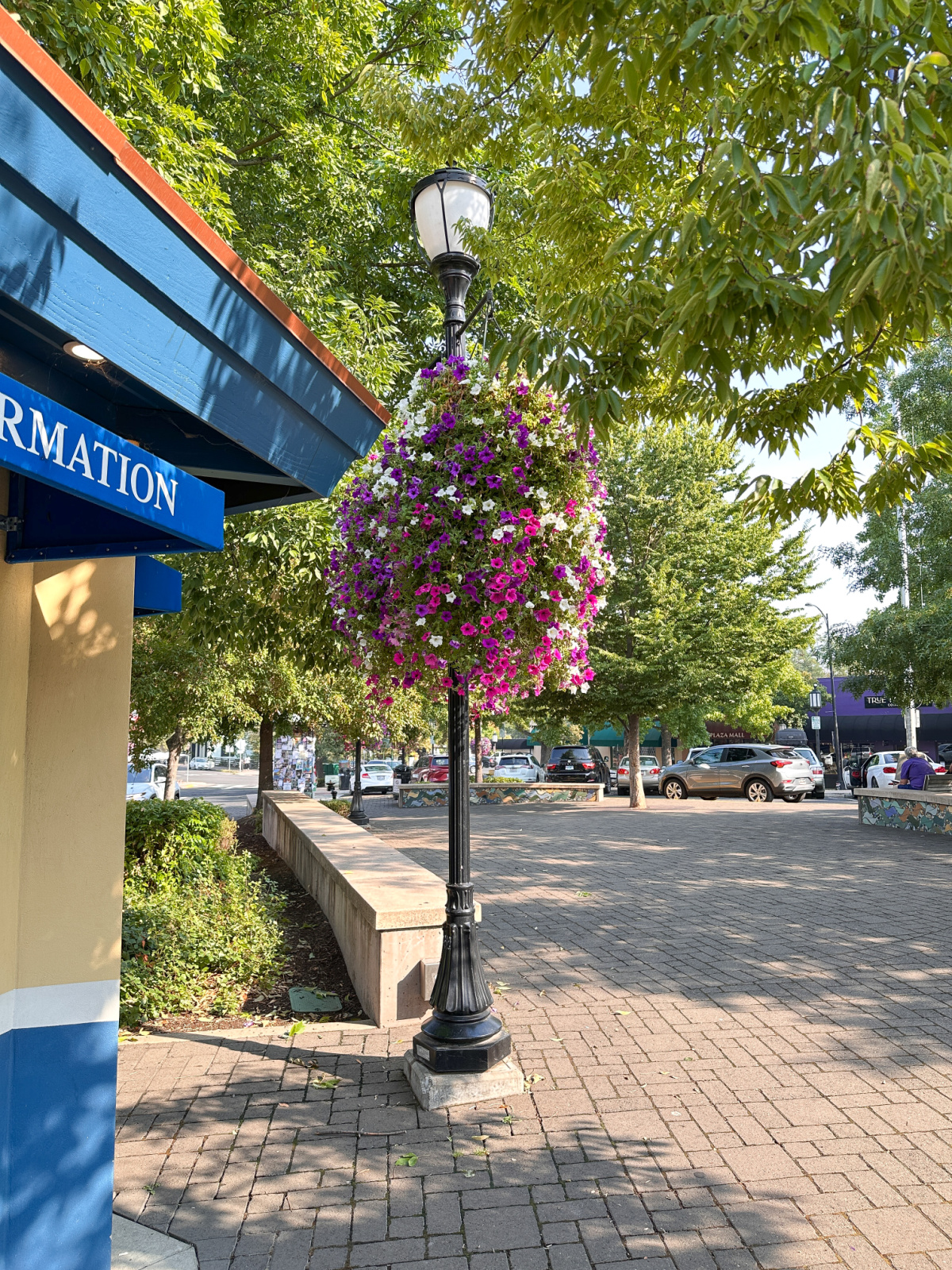 Ashland’s historic downtown is charming old buildings lots of coffee shops, restaurants, galleries and flower baskets hanging from the lampposts.