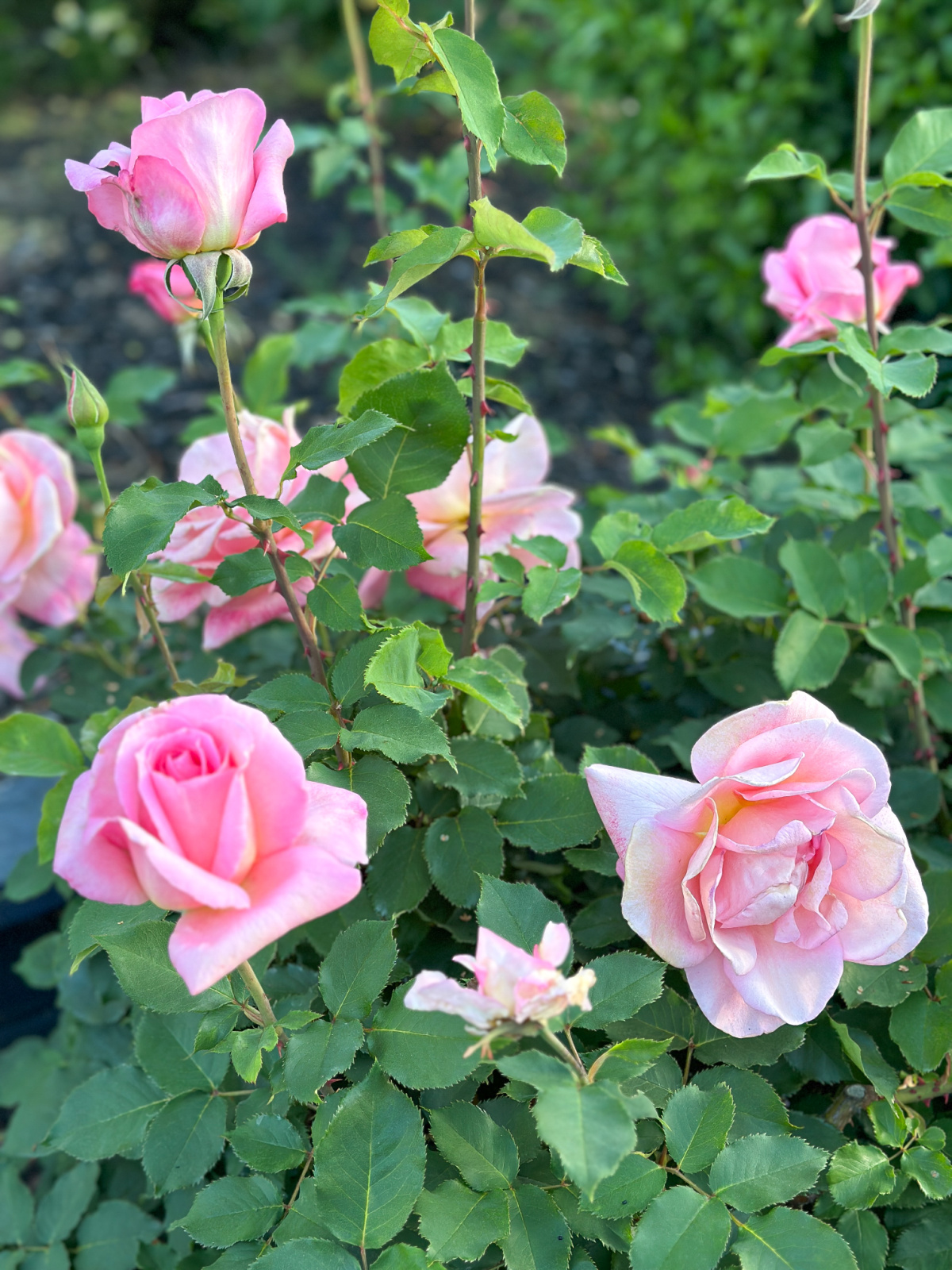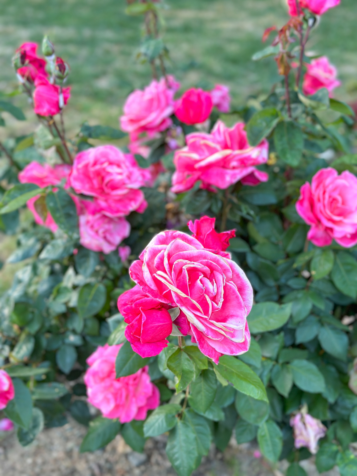 On our walks to town I’ve been admiring everyone’s roses in bloom. The climate here is a tad warmer than Orinda and apparently the roses thrive.