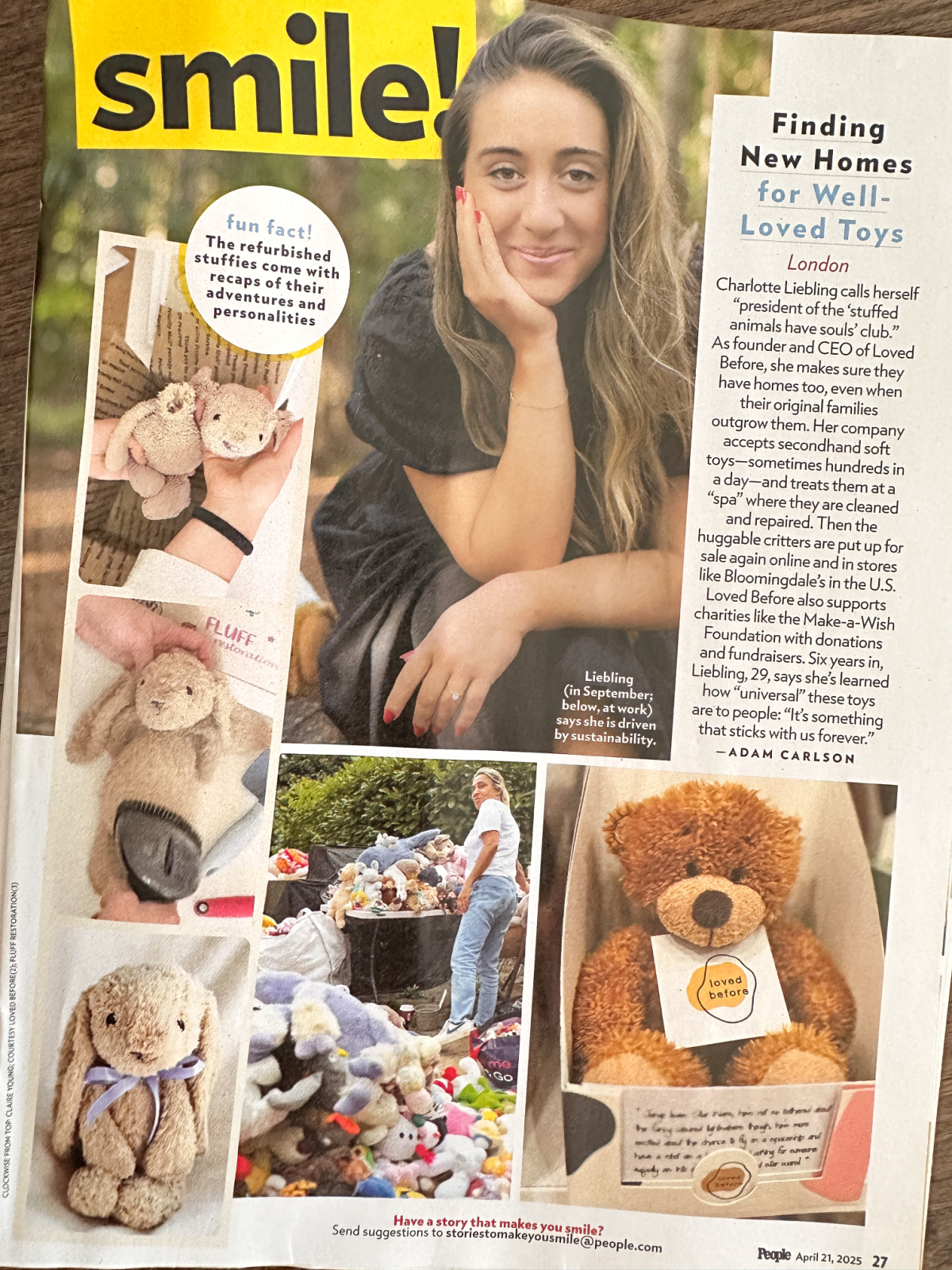 While preparing Zeebee for his rehabilitation I read an article in People magazine about a Charlotte Lievling, a London woman who gives new life to stuffed bears. Her business, Loved Before, cleans and repairs stuffed animals and makes them available for resale online and at stores like Bloomingdale’s. They also support the Make-a-Wish Foundation. What a lovely and sustainable way to breathe new life to well-loved stuffed animals by gifting them to a new generation of littles to continue loving on them.