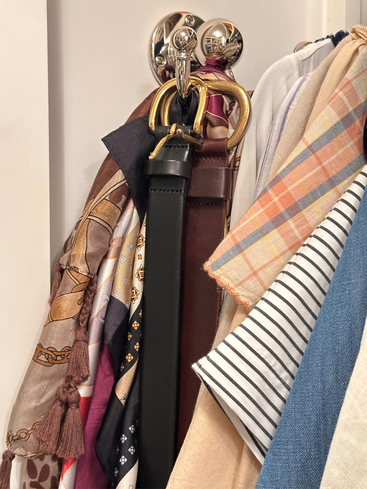 The same can be applied to stuff. Fewer but better. I’ve been on a decluttering war path for some time and I’ve talked a lot about downsizing my closet. It’s an ongoing process and I finally achieved my goal of containing my wardrobe (with the exception of jackets and coats that have their own closet) in our primary bedroom closet. It’s not a huge closet, but it’s good sized and why do I need more than what fits comfortably inside? I don’t. In full disclosure we did send some things over to the little house on 4th – aka the world’s most expensive storage facility – but for me it was just one garment bag (5 blazers) and some boots and shoes tucked into these shoeboxes (we use the shoe, large shoe and boot sizes).