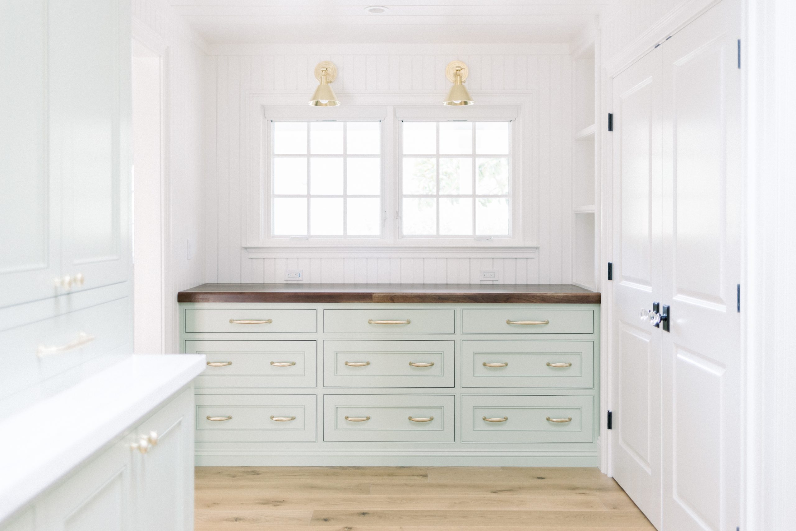 When it was time to paint – months later – I felt the Wimborne white wasn’t quite right for the wainscot, trim and moldings. I switched it out for Benjamin Moore White Opulence, a brighter white that worked well with the Farrow & Ball colors and was more in keeping with the light and airy space I envisioned.