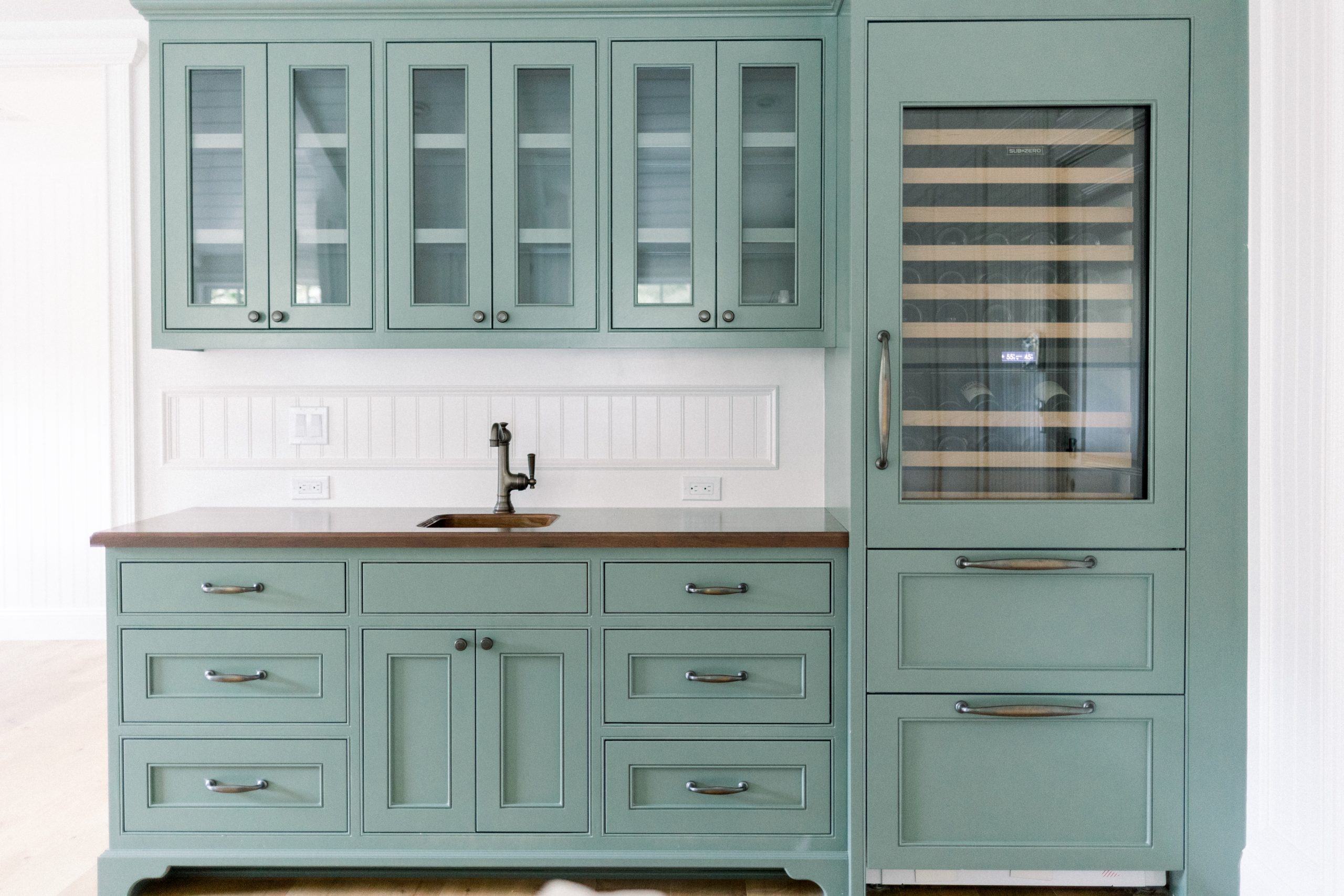 - Beverage Bar cabinetry – Farrow & Ball Green Smoke No.47