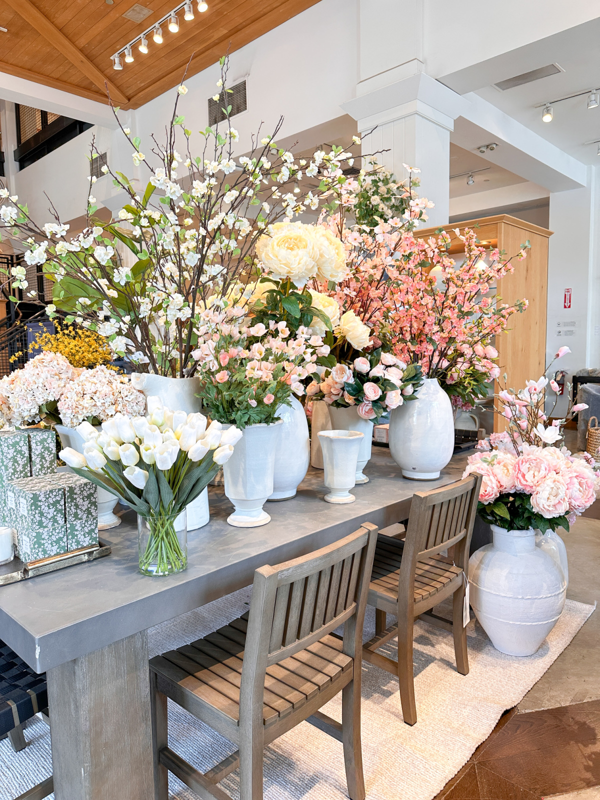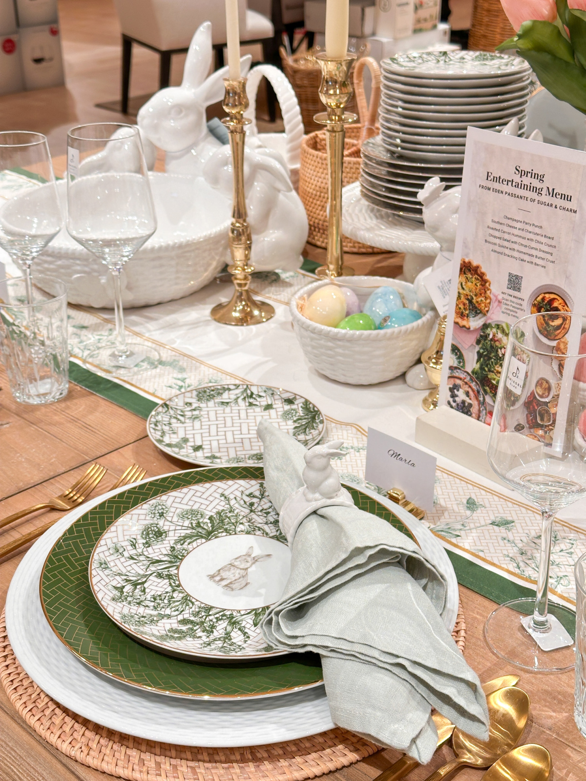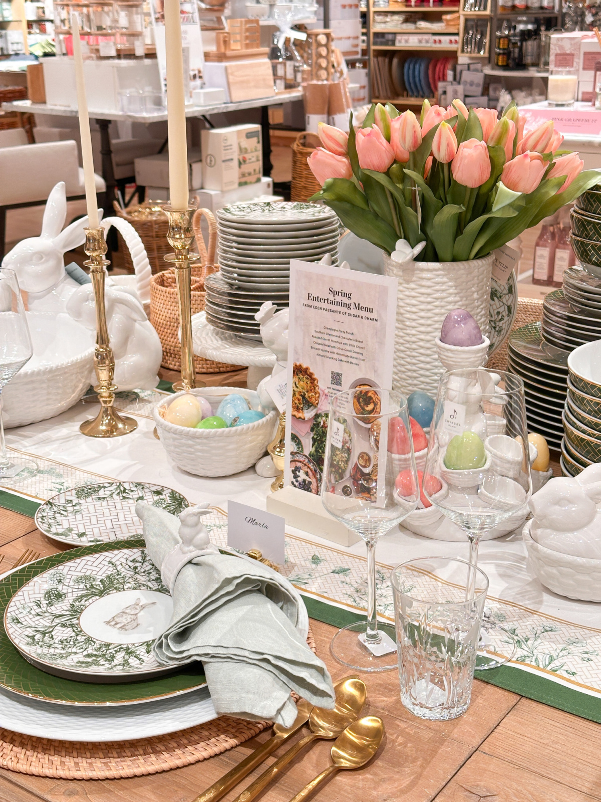 Speaking of Easter, it was my mom’s favorite holiday and our family frequently hosted our neighbors for a late afternoon dinner. I just had a flashback of sitting at the kids table and the boy next door (later my high school sweetheart) shooting peas into my milk. Anyway, my mom loved to set a beautiful Easter table and walking through the spring table displays at William Sonoma made me think about how much she would have loved all the pretty things.