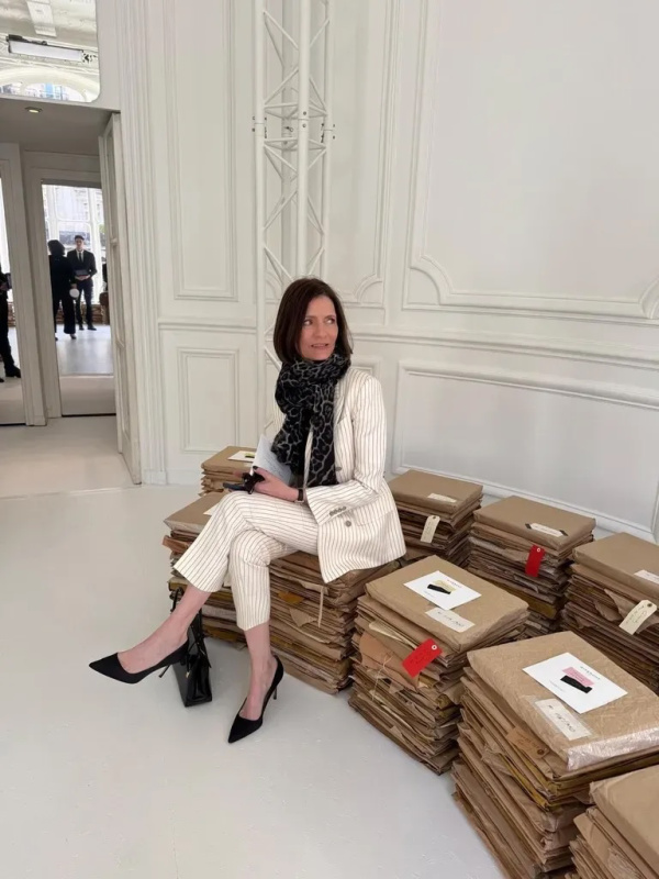 I thought immediately of Plum Sykes in her recent Substack looking so chic in a Peter Hawking designed pinstripe pantsuit at Sarah Burton’s Givenchy debut show.