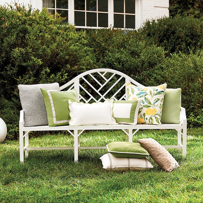Let’s talk about green and white. The past few years it seems to have fallen out of favor with my favorite outdoor pillow and decor sources. I’d all but given up when this year’s summer catalogs started to arrive. Green and white is back. And I’m leaning in.