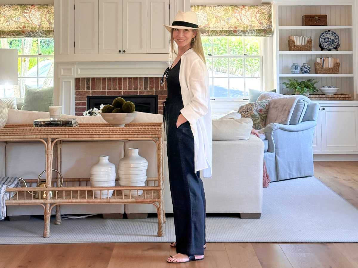 Similar Shirt Coverup | Swimsuit | Linen Pants | Similar Sandals | Hat