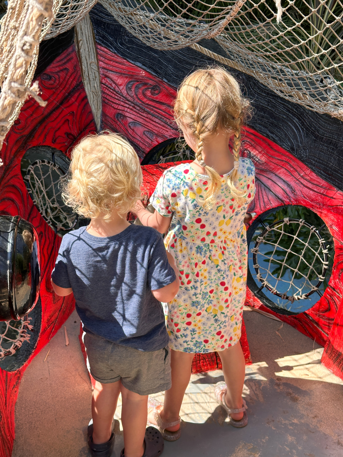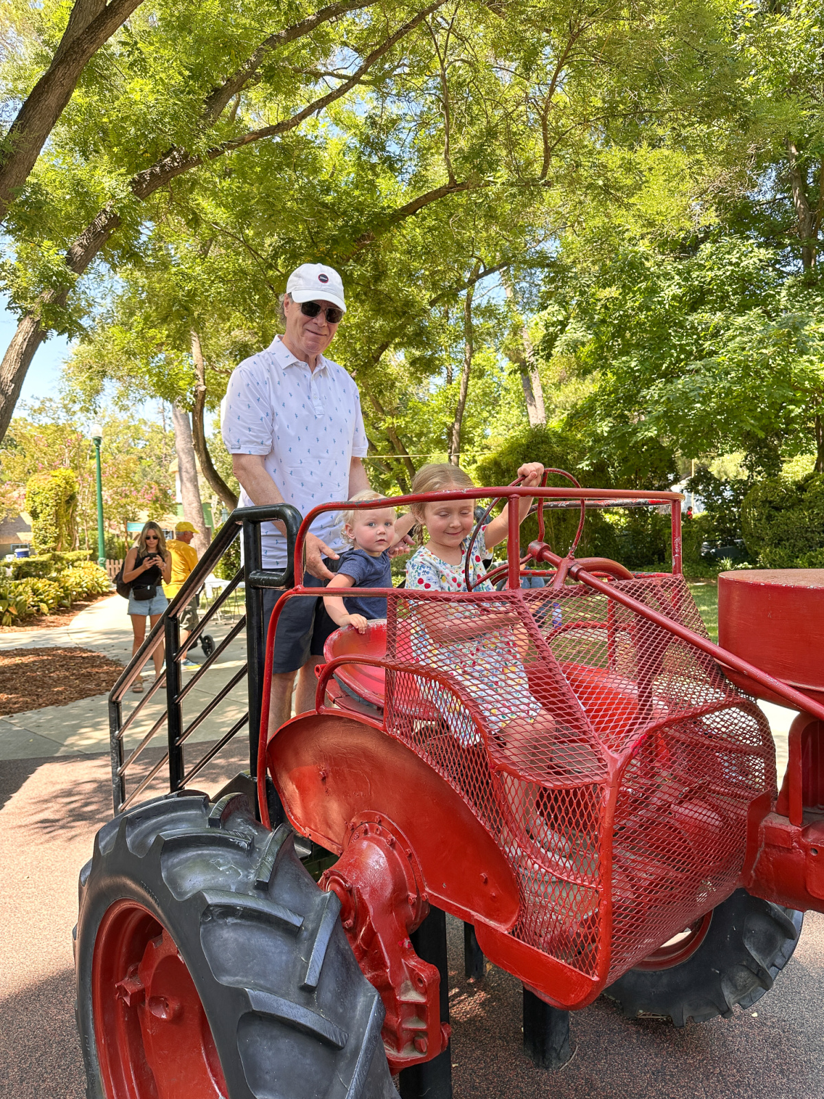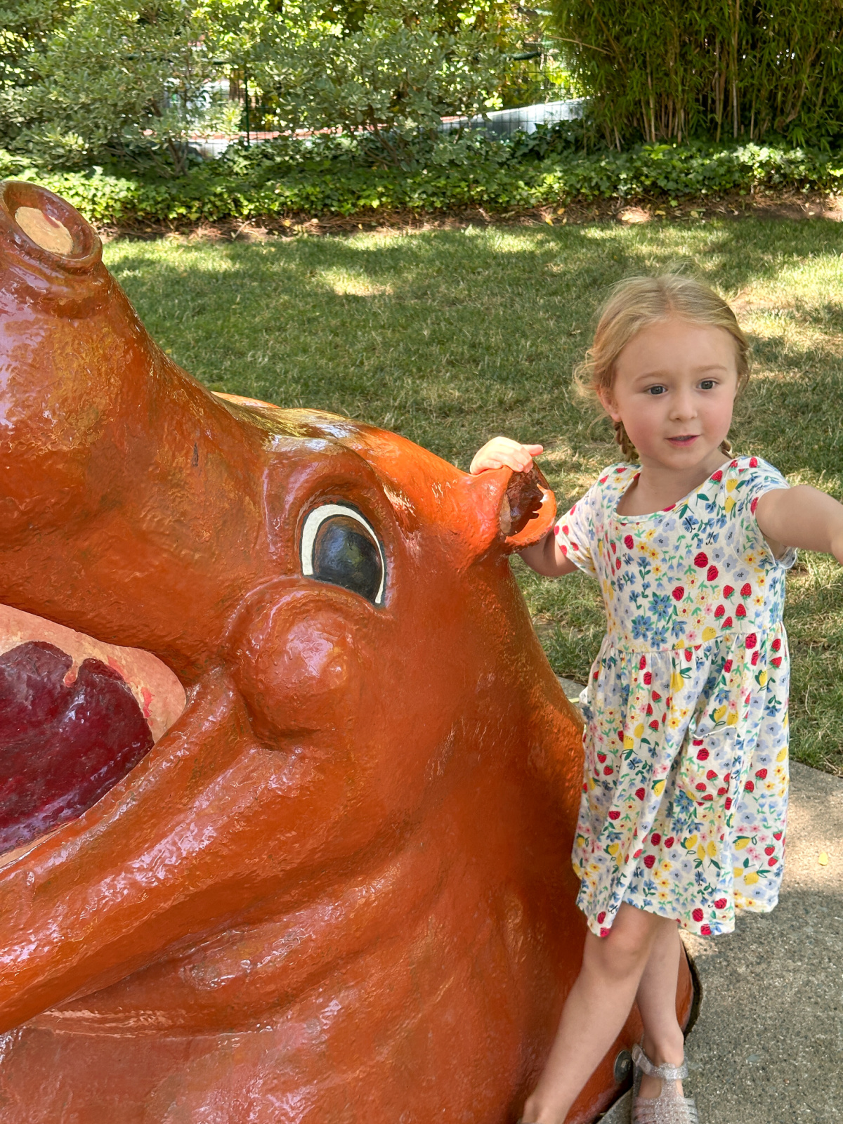 The pirate ship was a huge hit with Haddie and little brother Everett. As were the fire truck, hippopotamus water fountain and tractor.