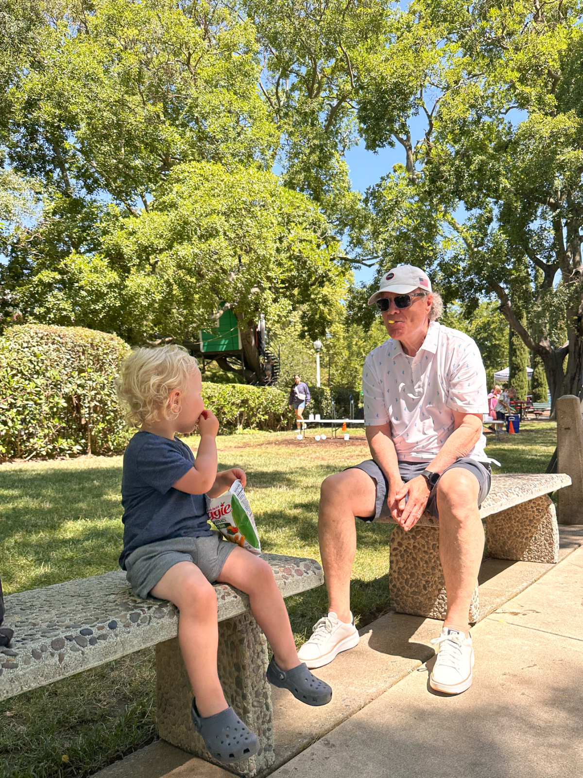 Much less of a fashion plate than my grand-niece, I wore my new favorite ruffle waist wide-leg cropped pants, cropped tee and Arizona EVA slides. It’s my early summer uniform and I’m in danger of wearing out all three pieces. The pants are lightweight and roomy and great for chasing kids around parks. The same can be said for Birkenstock’s EVA Arizona’s … they’re light as a feather and surprisingly great for lots of walking. Of course, I brought my everywhere bag because handsfree is the only option.