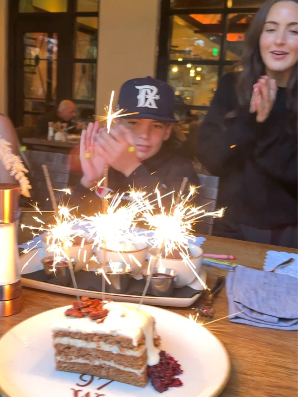 We ended dinner with birthday desserts including a huge slice of carrot cake with fireworks in the center.