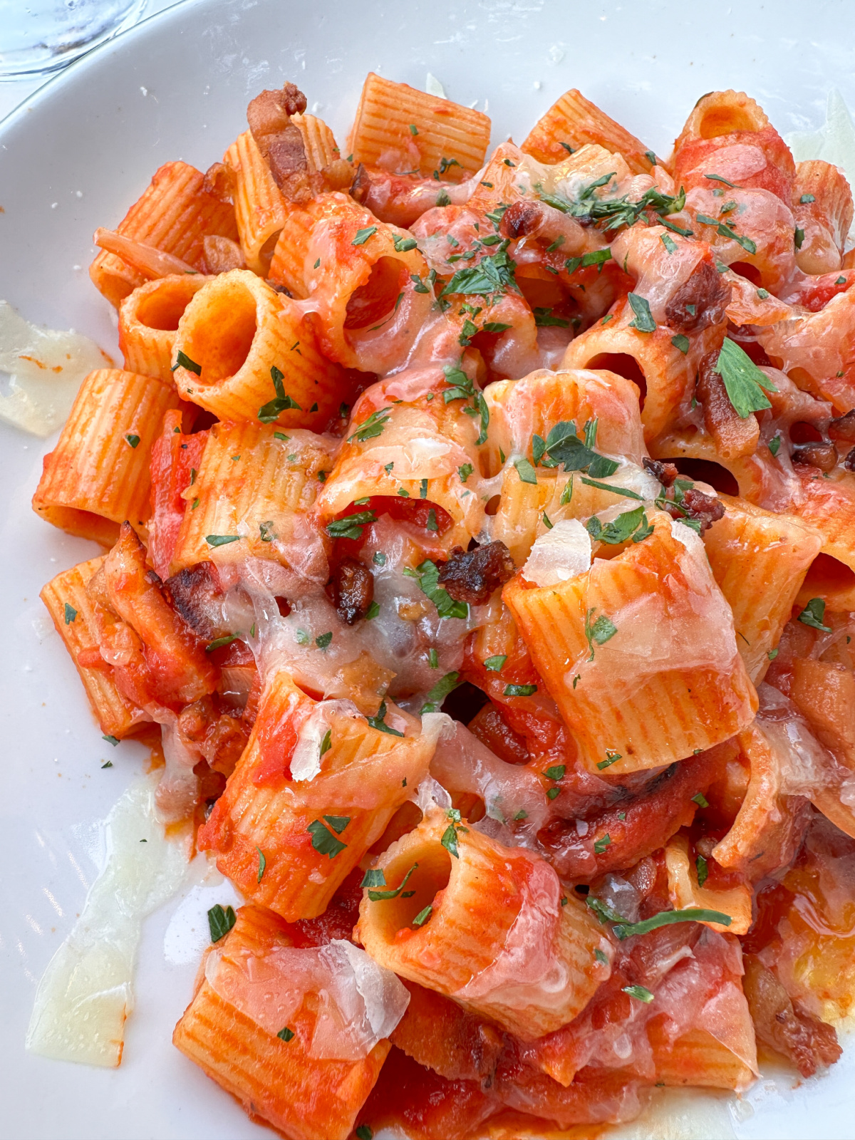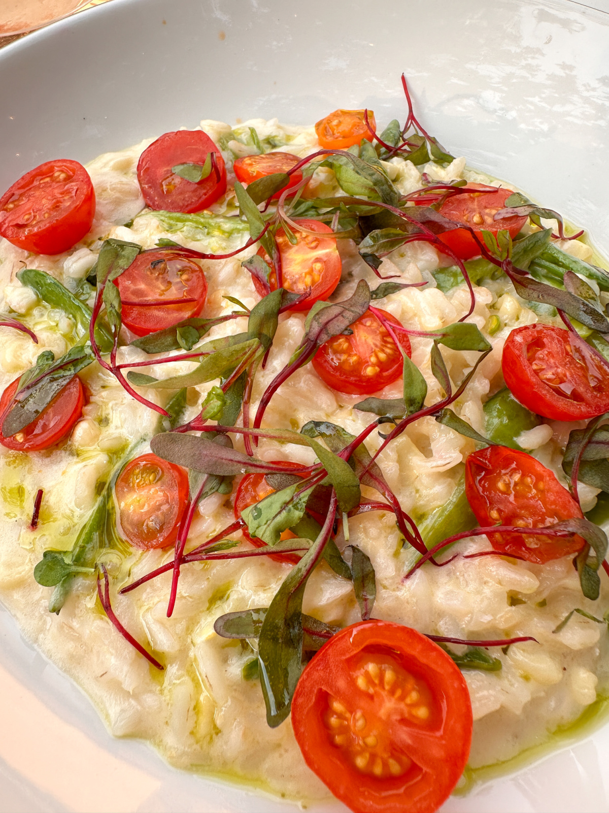 The Depot serves Italian food and it’s the perfect spot for a summer alfresco dinner. We started off with calamari and shishito peppers. I had a seasonal corn risotto and Jim the Rigatoni Amatriciana. We also had a yummy chocolate dessert.