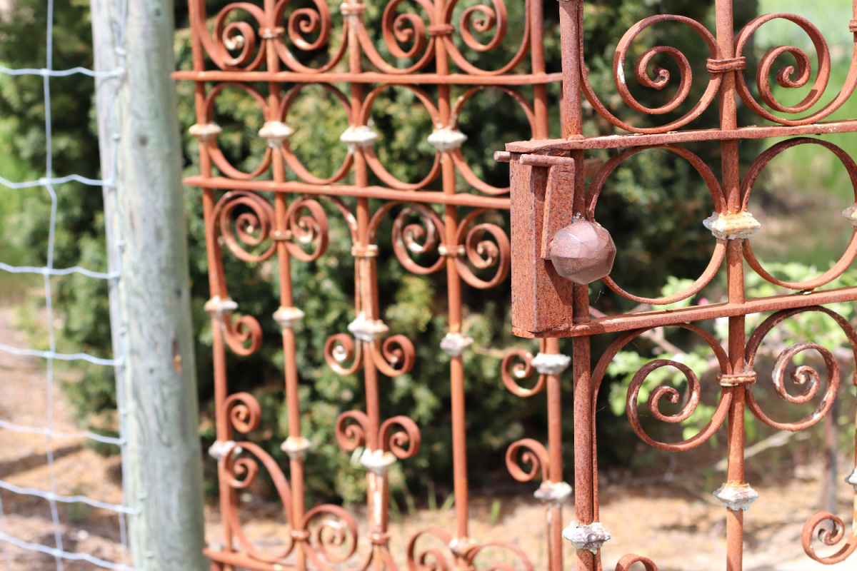 The 1875 farmhouse sits on five acres covered with beautiful gardens, farm animals, and art.
