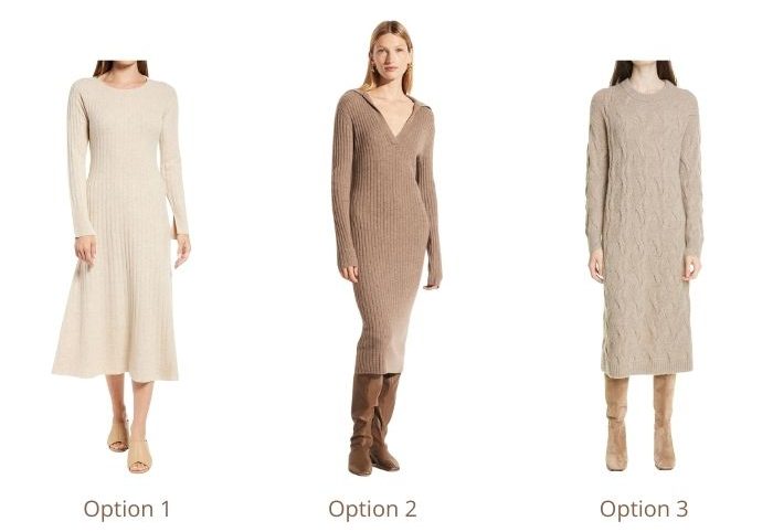 I like option one of sweater dresses. Nice lines!