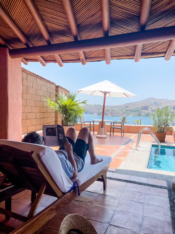 One thing I should have packed was a book. A real book. Reading outdoors on an iPad screen can be challenging (read irritating), even in the shade. Thankfully, our room (which had no television) was well stocked with good books and we each found something to bury our noses in.