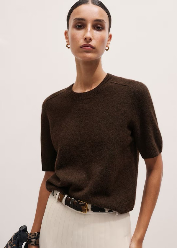 A couple of circle-backs … last week I talked about my fall sweater essentials and overlooked a biggie … the sweater tee. Last year I bought this cotton cashmere tee in gray and black and wore them all the time. They’re great on their own and under a blazer. This year I’d like to add a brown sweater tee and this felted Merino tee is a beauty.
